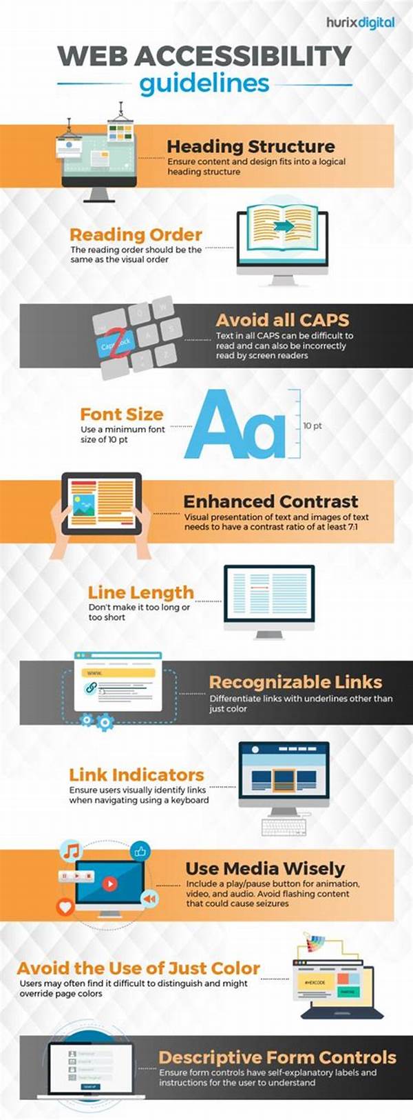 5. Stay Updated on Accessibility Laws and Standards: Legal frameworks and technology evolve, necessitating updates to accessibility guidelines. Staying informed ensures continued compliance and best practice adherence.